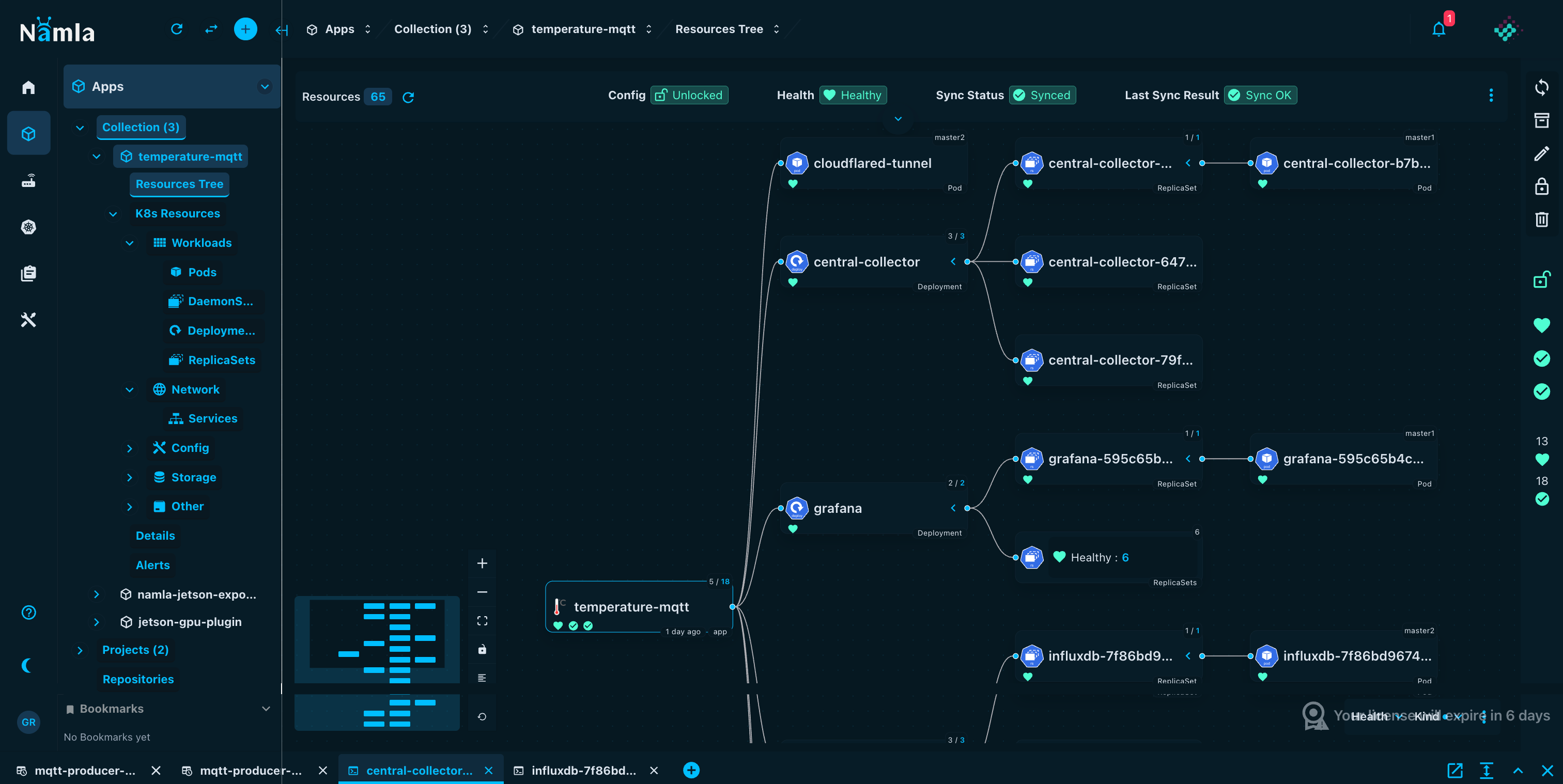 NVIDIA Jetson · Modbus TCP · Mosquitto MQTT · Telegraf · InfluxDB · Grafana · Cloudflared · Namla SD-WAN